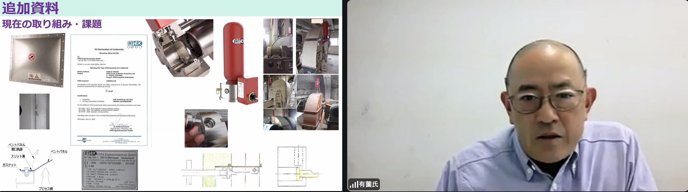 (2) 講演2:「「粉じん爆発リスクアセスメントと防爆設備の選択」―防爆分野を学びはじめました―」有薗 健一氏(機械)